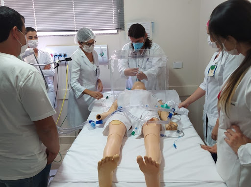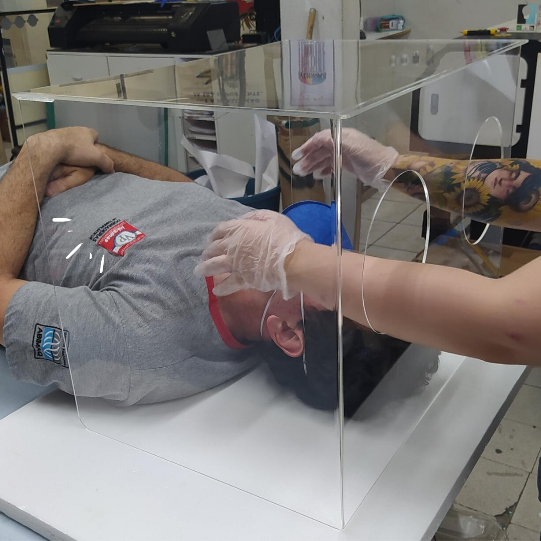 A intubação orotraqueal (IOT) é uma maneira eficaz de se garantir uma via aérea definitiva, sobretudo em pacientes instáveis. A IOT consiste na colocação de um tubo dentro da via aérea através da via aérea superior do paciente (boca laringe traqueia), utilizando um laringoscópio. Os casos mais graves do covid19 pode levar à insuficiência respiratória. Portanto, é importante oferecer terapia de suporte adequada a estes casos. No momento do procedimento médico para a intubação, o profissional de saúde tem contato direto com secreções do paciente infectado. Por essa razão, se faz necessário o desenvolvimento de soluções para minimizar a possibilidade de infecção do profissional de saúde. A presente proposta visa desenvolver uma cúpula, feita de acrílico, que cobre a cabeça do paciente e protege o profissional de saúde de suas secreções, possibilitando bom campo de visão ao profissional de saúde, permitindo que ele acesse o paciente por meio de dois orifícios para entrada de seus braços. O presente projeto visa desenvolver o projeto do produto, fabricar um protótipo para teste e, posteriormente, validá-lo por meio de teste de usabilidade para uso em estabelecimentos de saúde.