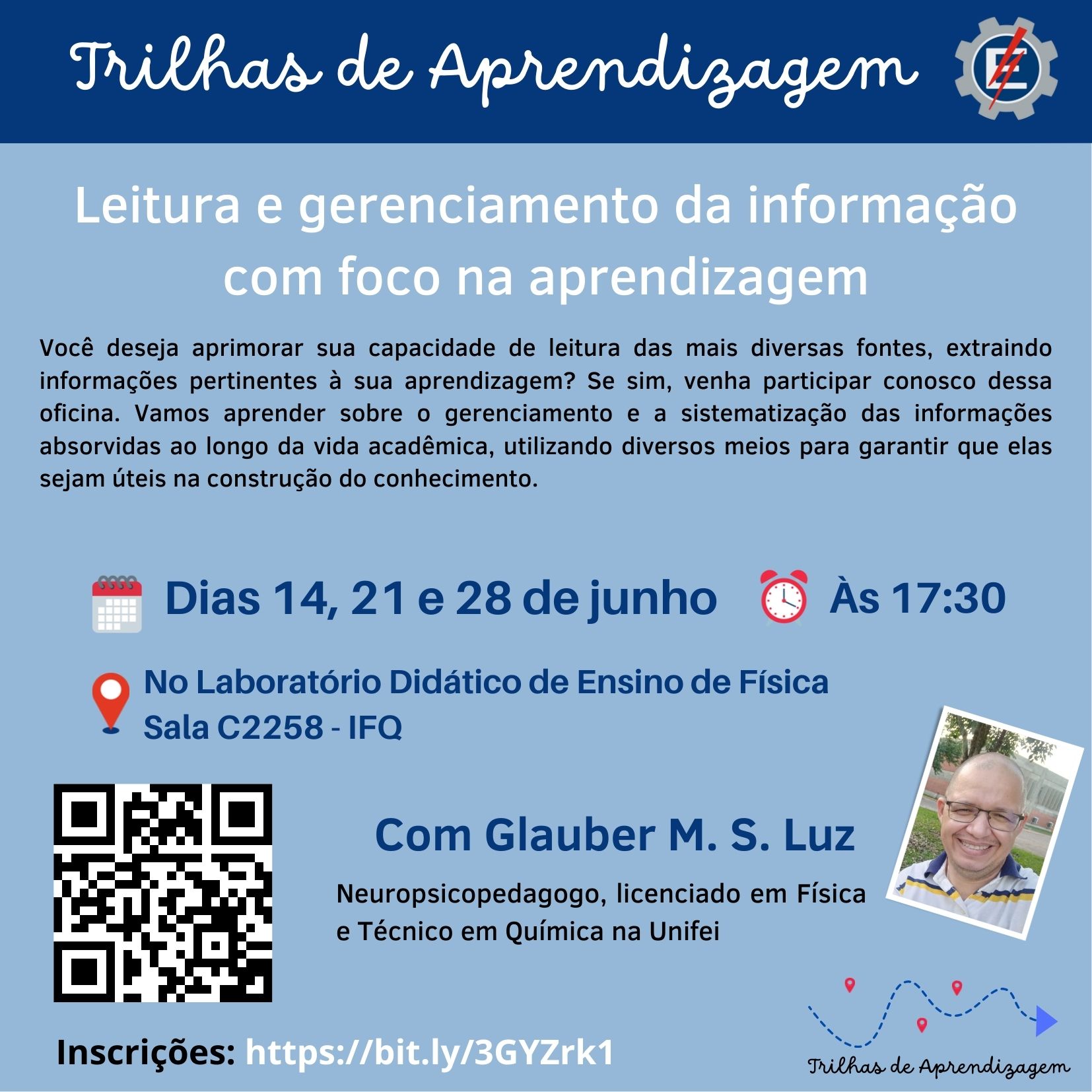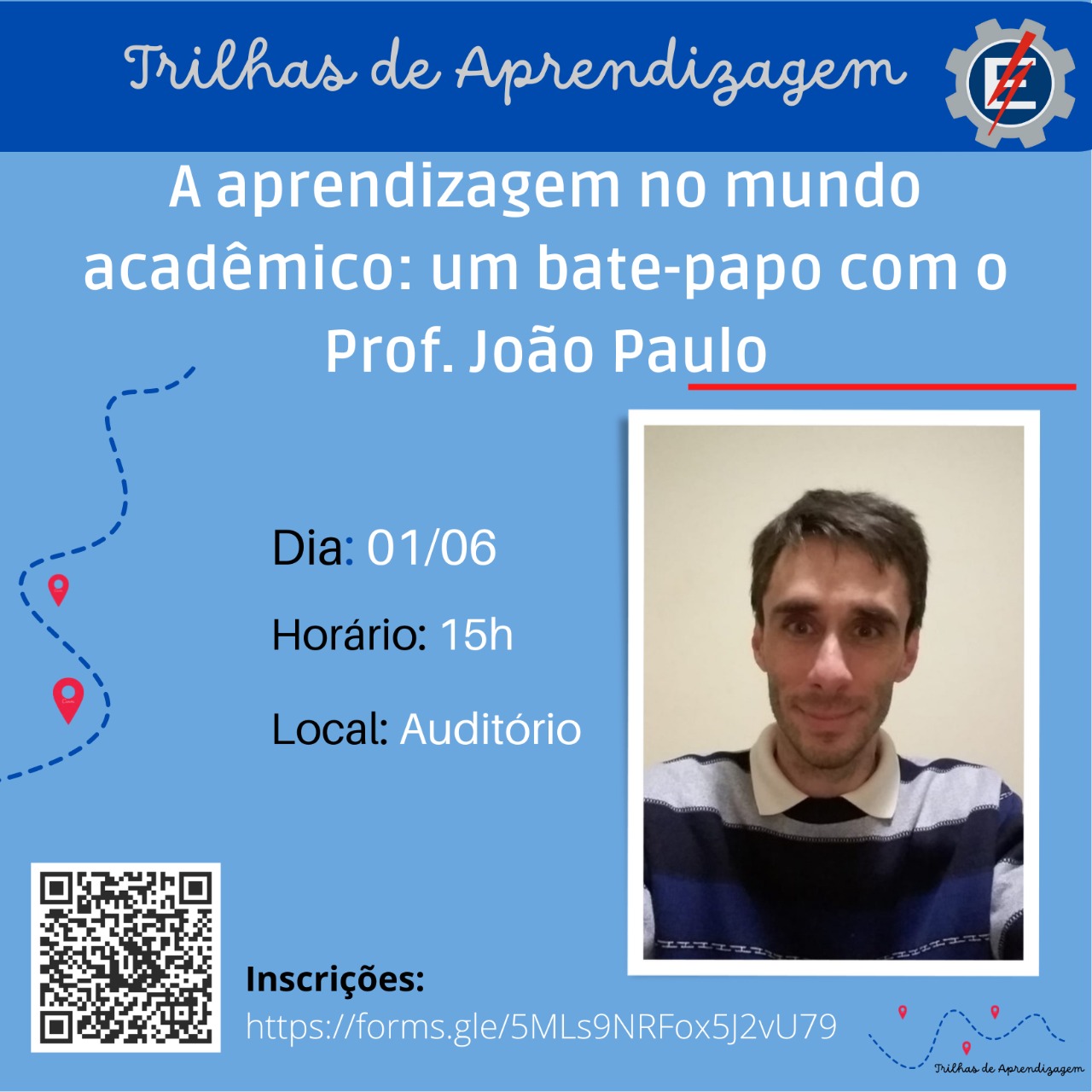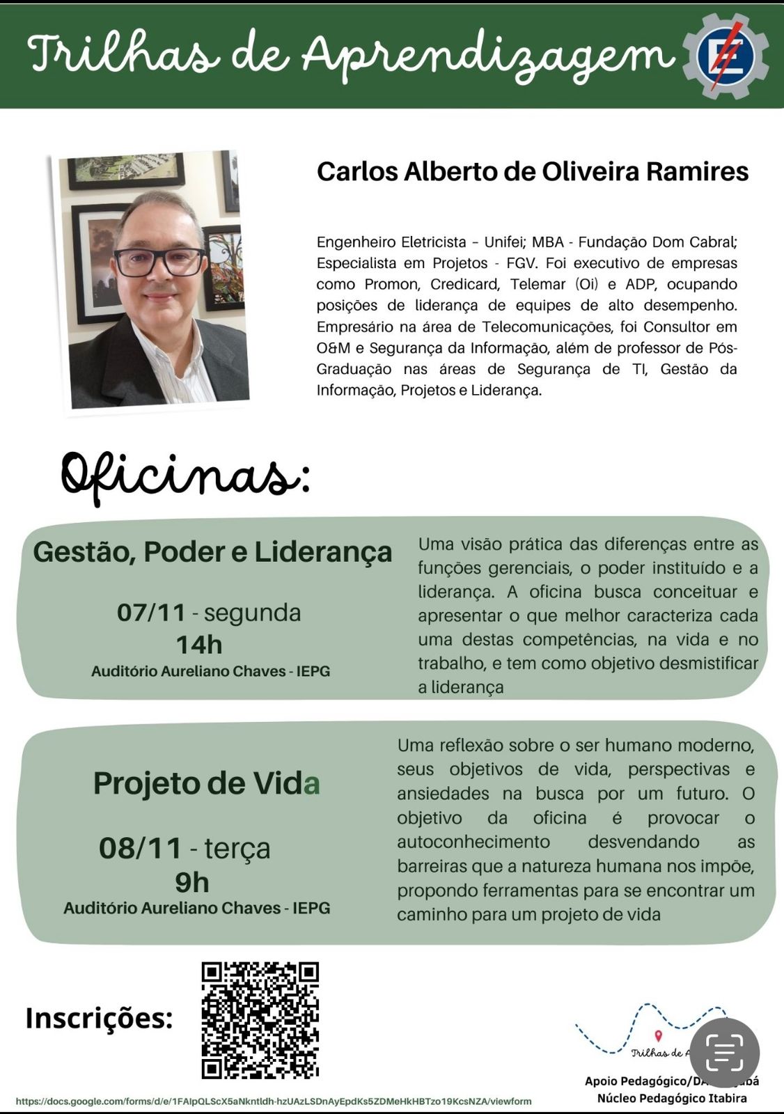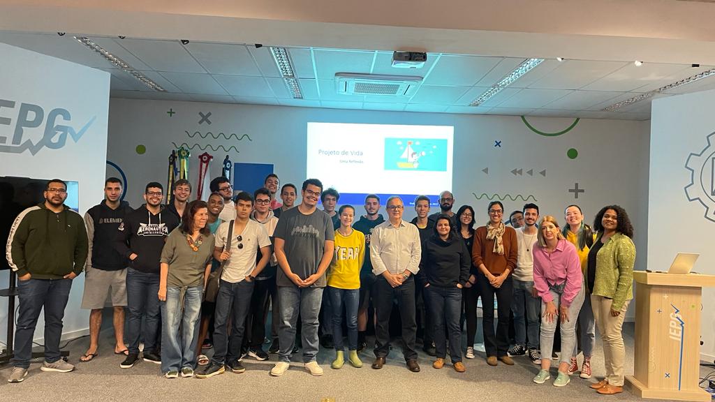 Divulgação para a atividade das Trilhas de Aprendizagem Projeto de Vida e Gestão, Poder e Liderança. As trilhas foram ministradas pelo Engenheiro egresso da Unifei Carlos Ramires.