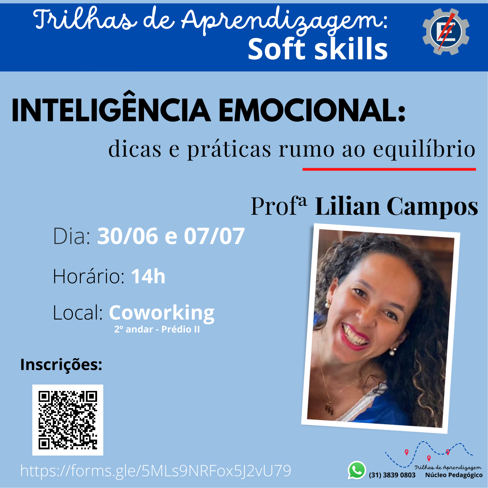 Trilha de Aprendizagem: Inteligência emocional: dicas e práticas rumo ao equilíbrio ministrada pela Professora Lilian Campos, nos dias 30/06/2022 e 07/07/2022.